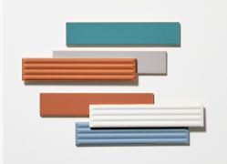 | 丸みを帯びたストライプ面状とフラットの2 タイプをラインナップ。ぬくもりを感じる北欧カラーと艶感のあるテクスチャーが、空間を優しく彩ります。 | |