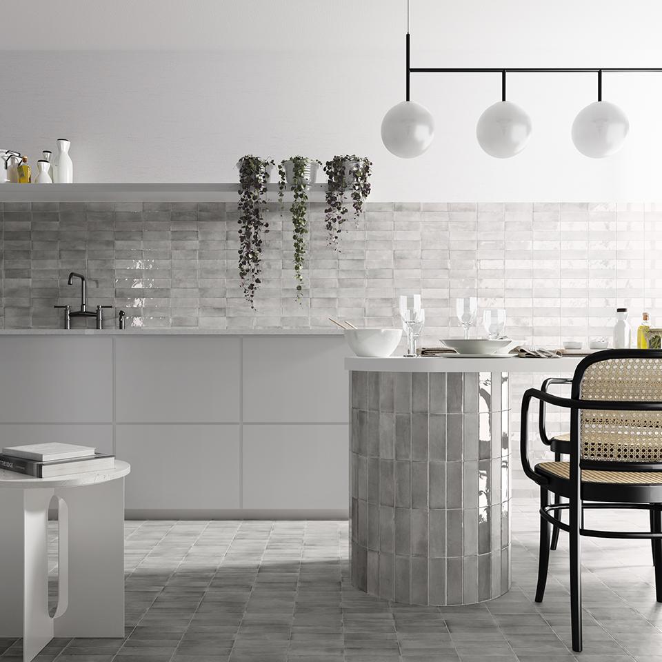 Amber grey(アンバーグレイ) 光の加減で表情を変える、透明感のあるニュアンスグレー。キッチンやダイニングなど、明るく清潔感のある空間を演出します。